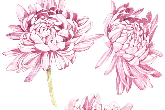 Japanese Chrysanthemums in Watercolor