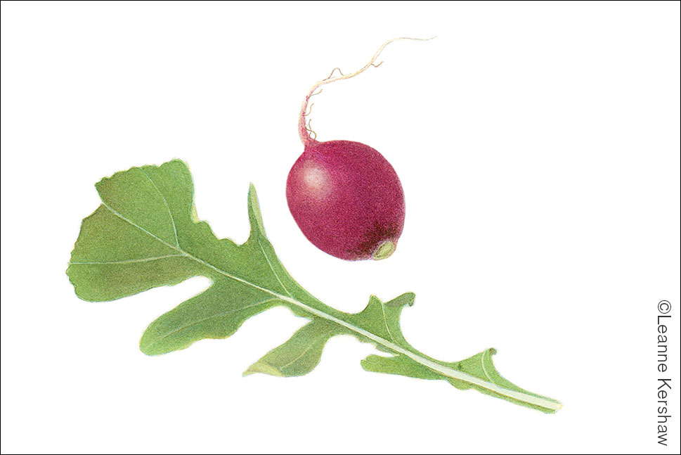 Learn the basic watercolor techniques used by botanical artists while painting radishes with leaves from a provided photograph. Flat wash, layering and dry brush techniques will be covered. This class will offer demonstrations and individual feedback from the instructor in an enjoyable and supportive atmosphere.
