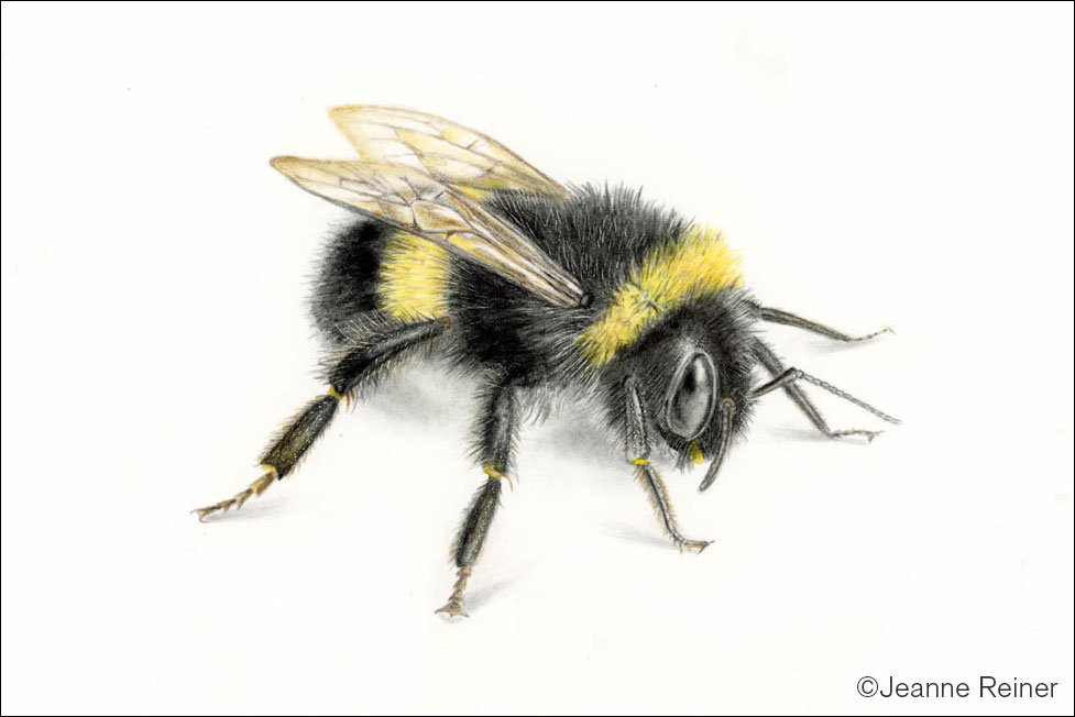 Bumblebees pilot their remarkably un-aerodynamic bodies in and out of our gardens all throughout spring and summer. In this class, you'll take a closer look at their anatomy and learn how to use colored pencil techniques to illustrate the "fuzzy" texture of the body, the transparent opulence of the wings, and the smooth, shiny jet-black eyes. Prerequisite: Colored Pencil